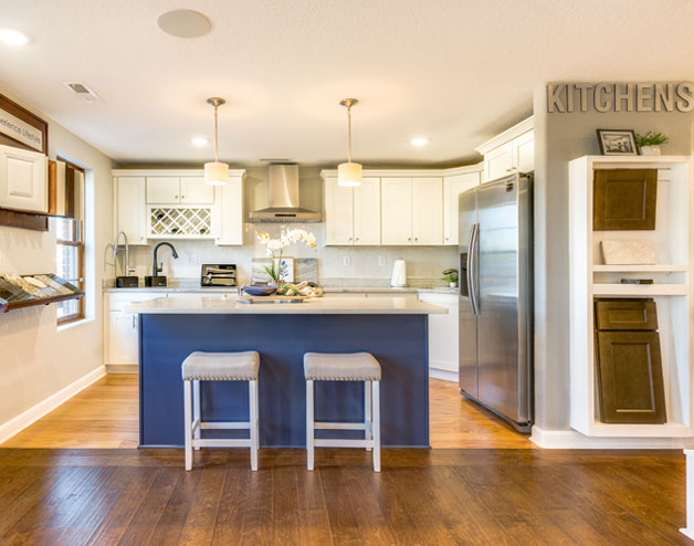 Tracy, our on-site designer will take you through the process of selecting the finishes and colors that will make your home a truly one-of-a-kind creation. “Inspiration is huge for us,” says Tracy. “We wanted a space where clients can touch and feel everything.” The Dream Center offers you the opportunity to envision each of the finishes paired with one another so you can see how it all looks together. You can see your cabinet choices against various backsplashes and feel and see the difference between porcelain tile or hardwood flooring. The ceiling is arrayed with light fixtures from farmhouse to elegant so you can clearly see the designs that move you.